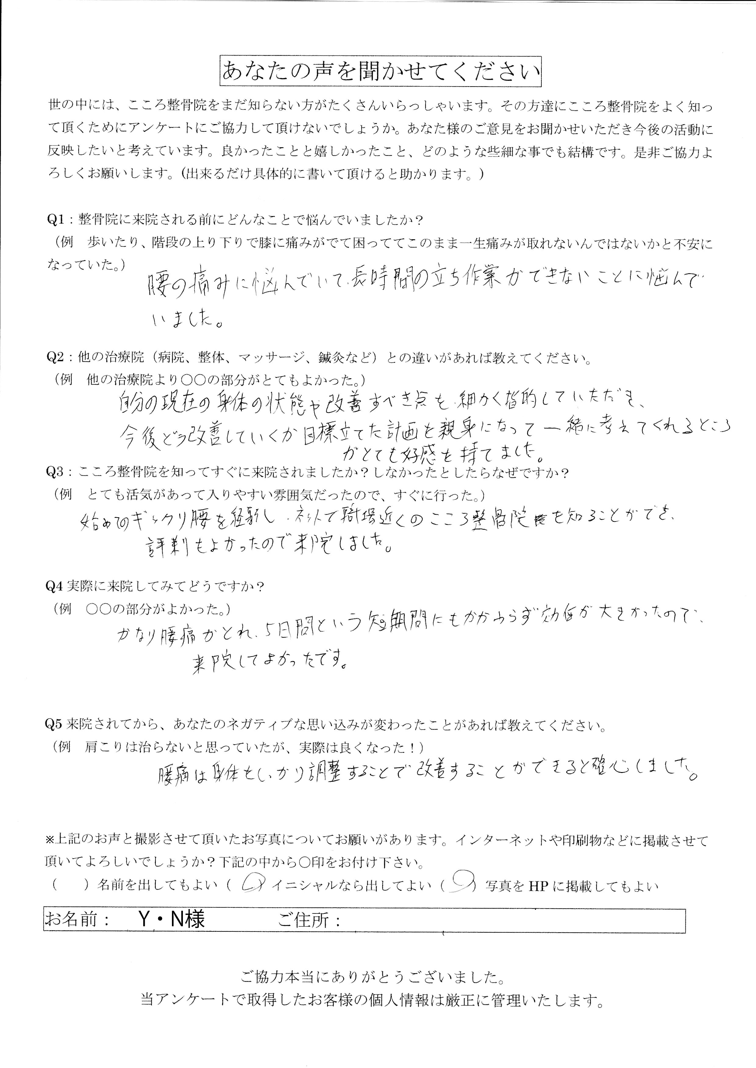 >初めてのギックリ腰を経験し、ネットで職場近くのこころ整骨院を知る事ができ、
